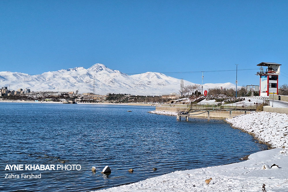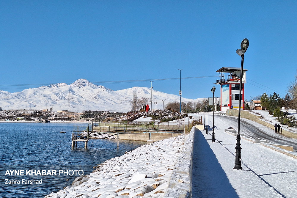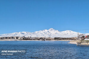 نماهایی زیبا از چهره زمستانی دریاچه شورابیل و کوهستان سبلان
